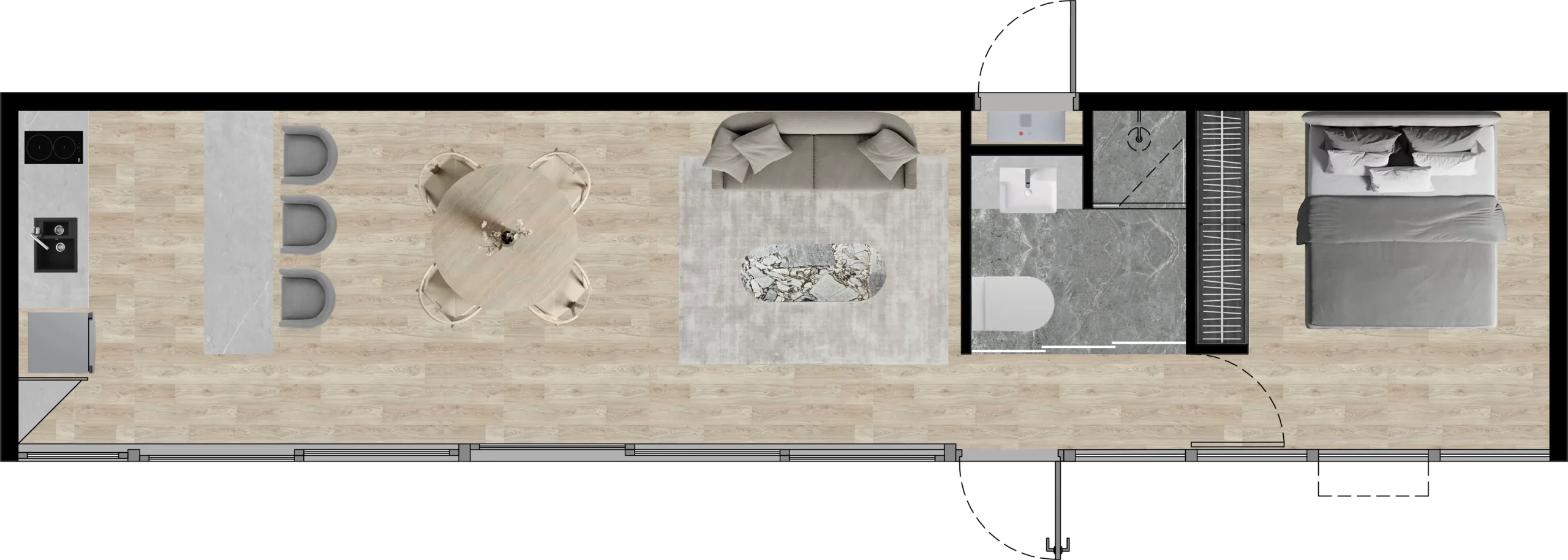 Fusionamos diseño, tecnología y sostenibilidad en un espacio compacto, eficiente y estéticamente cuidado. Nuestra propuesta se basa en la construcción modular, el bajo impacto ambiental y una experiencia completamente personalizada para quienes buscan libertad, diseño y funcionalidad en una misma solución.
